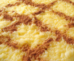 • 125 gr de arroz • 1 colher (sopa) de manteiga • 150 gr de açúcar • 7,5 dl de leite • 3 gemas • 1 casca de limão • Sal • Canela em pó e em pau